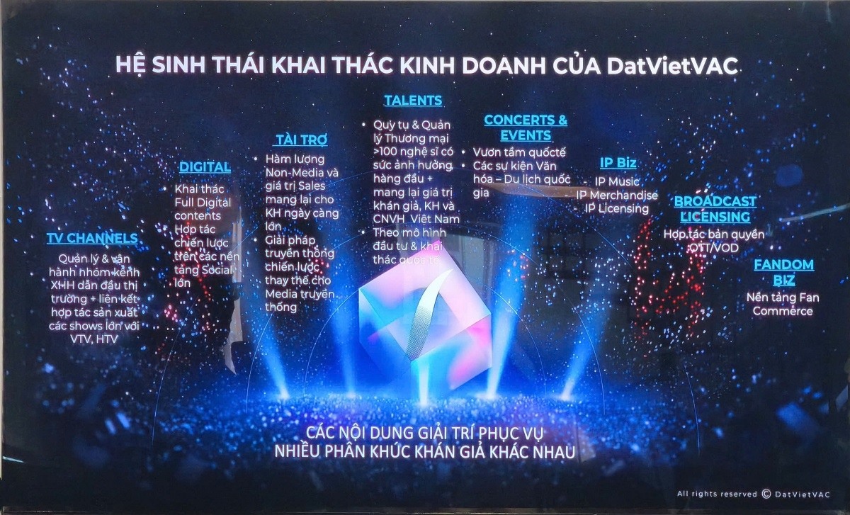 Chia sẻ tại sự kiện, ông Đào Văn Kính - Phó Chủ tịch HĐQT, Tổng Giám đốc DatVietVAC cho biết trọng tâm trong giai đoạn tới là mở rộng đối tượng khán giả và tối ưu nguồn thu từ người hâm mộ (fandom monetization), hướng đến gia tăng tỷ trọng doanh thu trực tiếp từ khán giả. Khi thiết lập được kết nối trực tiếp với người dùng thông qua các nền tảng fandom, Công ty có thể mở rộng các nguồn thu dựa trên việc khai thác thương mại nghệ sĩ.