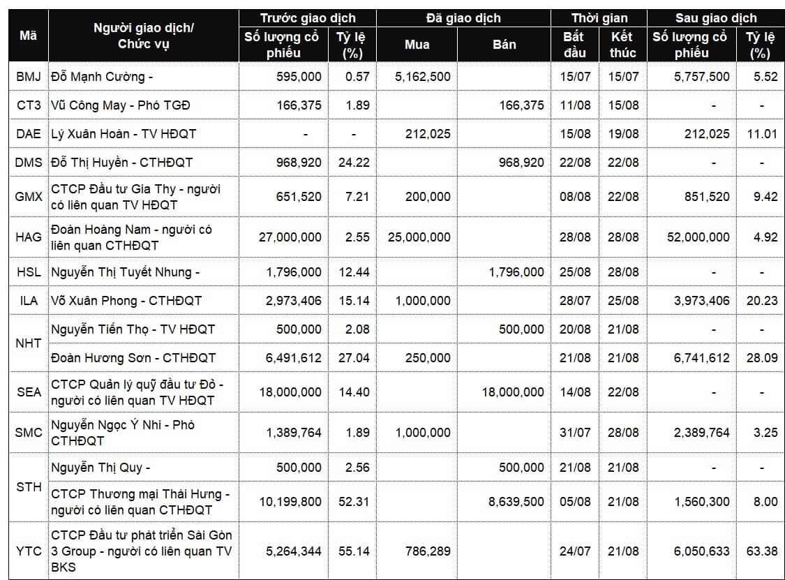 Danh sách lãnh đạo công ty và người thân giao dịch từ ngày 25-29/8/2025