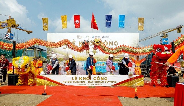 Hồ bơi Maximus – chiều dài mặt nước chuẩn Olympic, với công nghệ điện phân tốt cho sức khoẻ vừa chính thức khởi công. Đây là 1 trong 28 tiện ích của phân khu Victory Heights được giới thiệu ra thị trường và bán trong đợt này |