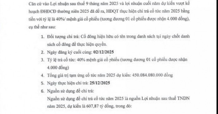 May Sông Hồng sắp tạm ứng cổ tức, gia đình Chủ tịch Bùi Đức Thịnh nhận về gần 200 tỷ đồng Ngọc Diệp - 12/11/2025