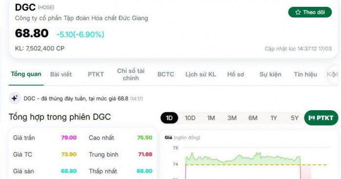 DGC giảm sàn sau thông tin khởi tố vụ án tại Tập đoàn Hóa chất Đức Giang Quỳnh Như - 17/03/2026 • 8 8