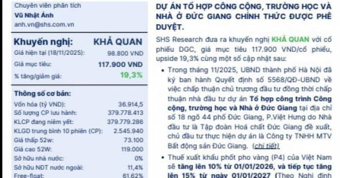 Dự án BĐS 4.500 tỷ đồng của Hóa chất Đức Giang: Lợi nhuận dự phóng vượt xa ước tính ban lãnh đạo Giang Nguyễn - 20/11/2025